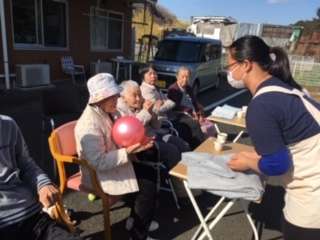 「な~んだ」と言われるかと思いきや、「ホントだ、あったかいね」と喜んで下さり、お茶する前にボール投げや歌で楽しんで頂きました。
