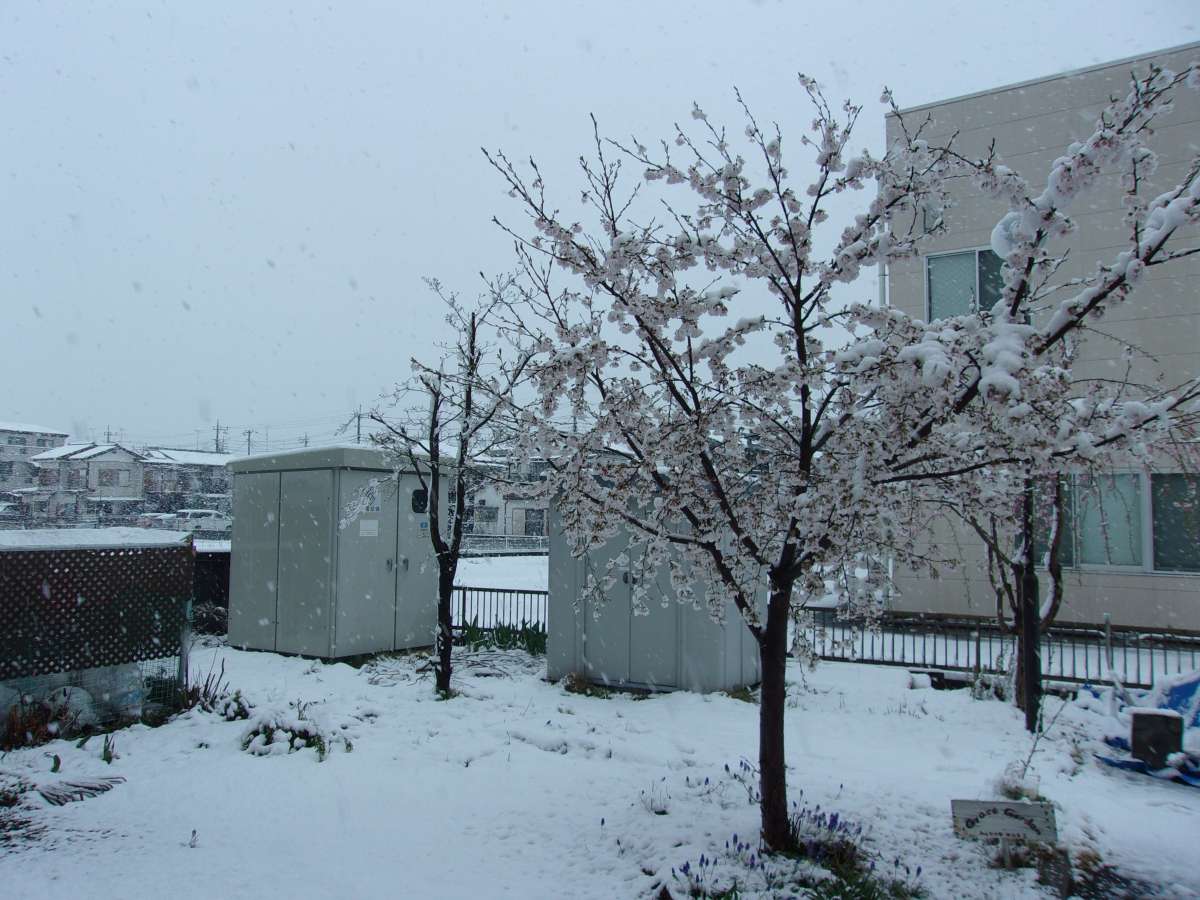 先日、GH清河寺2の庭に植えてある桜のつぼみが開き始め、見頃まであと少しというところだったので雪が積もってしまい散ってしまわないか心配でした。