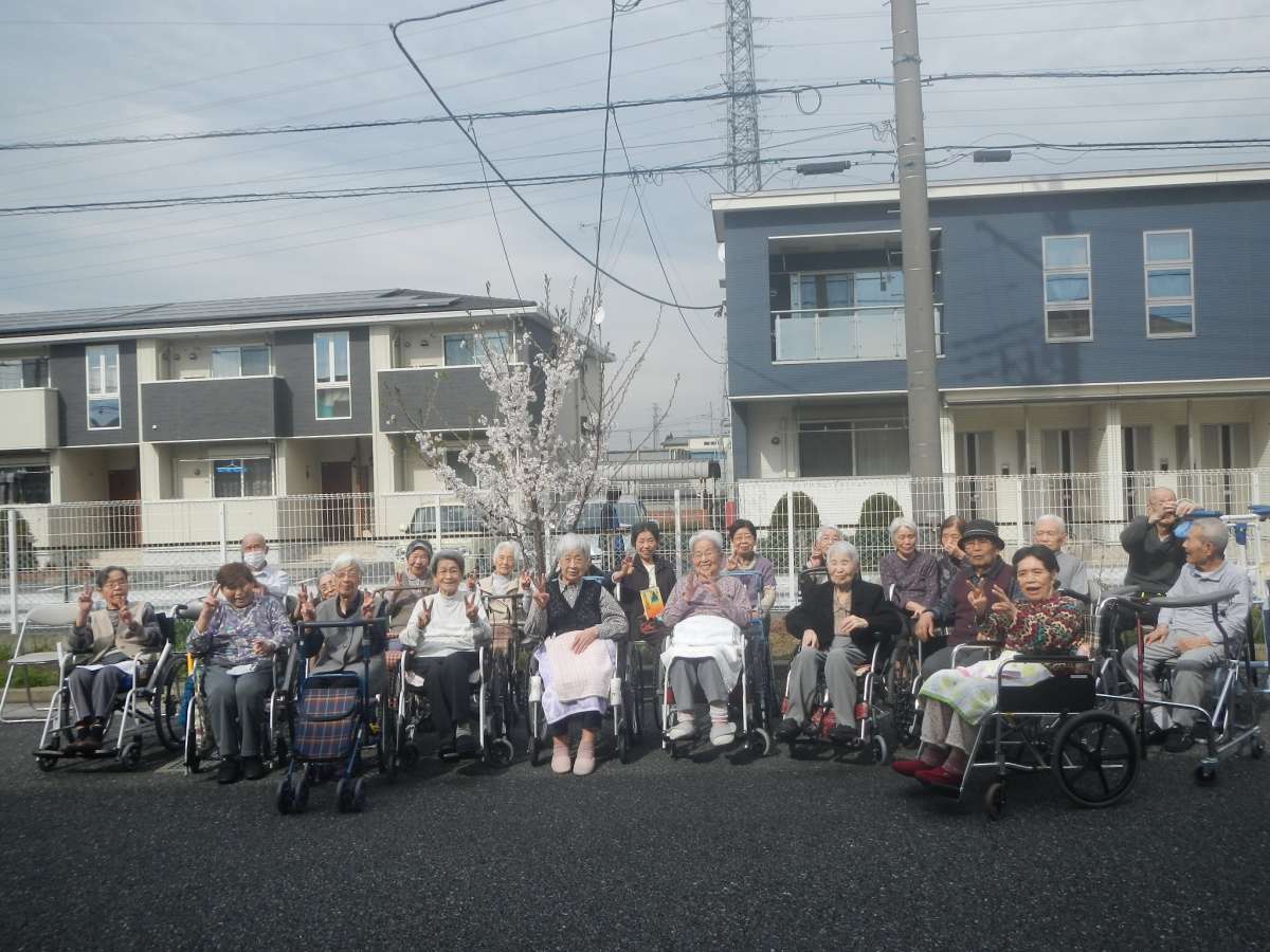 桜の前には、徐々にご利用者様が集まり、記念撮影会が始まりました。