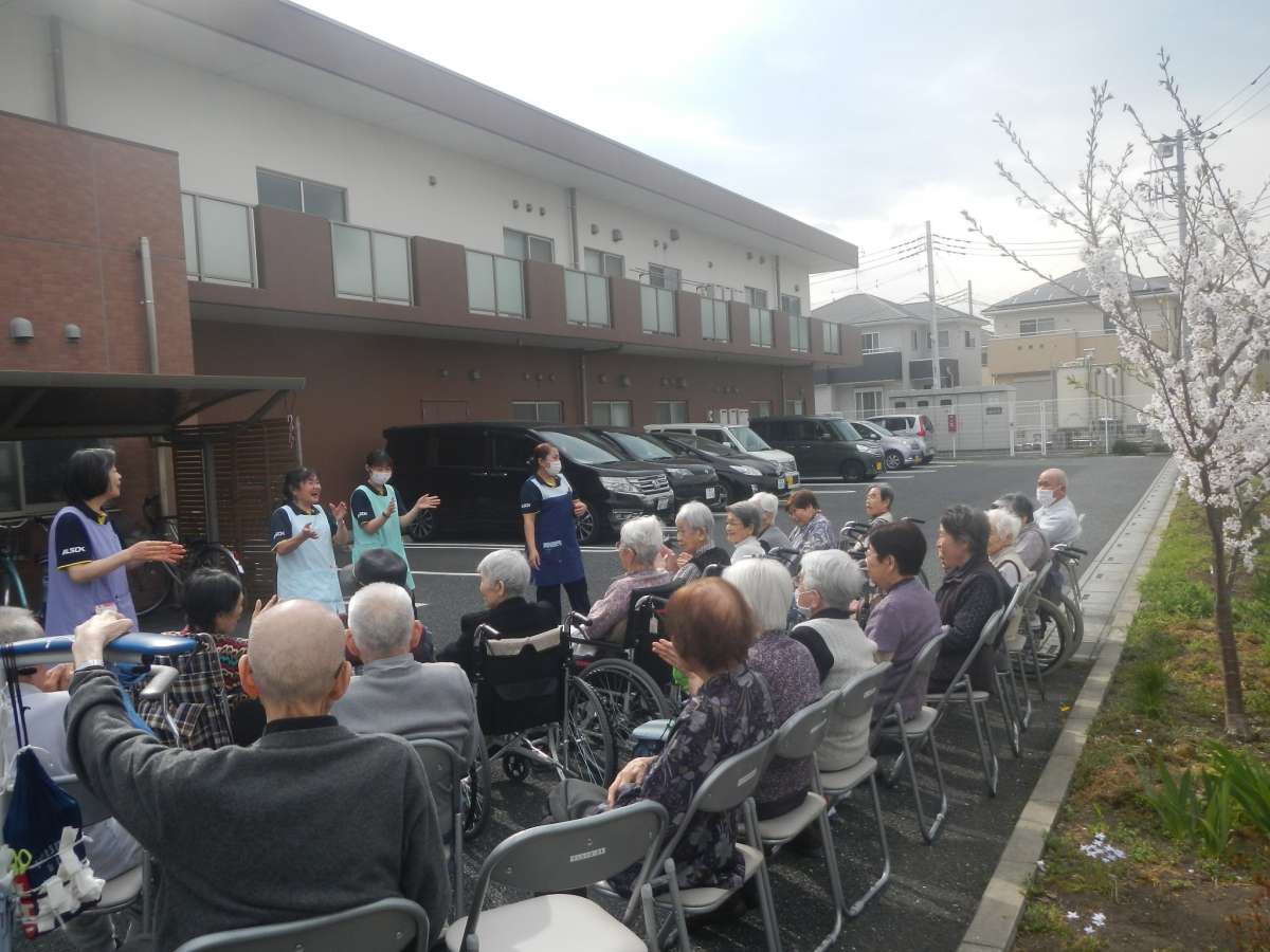 介護付有料老人ホームみんなの家・北本中丸では、庭先にある「おかめ桜」と「芝桜」でお花見を行ないました。