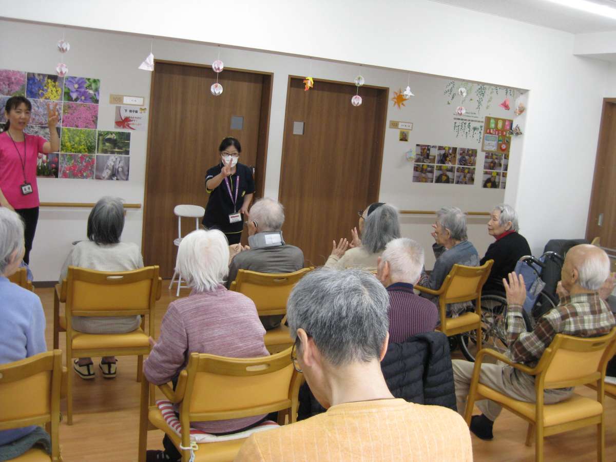 GHあきがせ ホール内でシニアヨガを楽しまれました。基本の姿勢をとってモモンガのポーズをから始めました。気持ちいいねえ・・・と仰られます。『はじめてだよ・・・』 と盛り上がりました。毎月行っています。GHあきがせに遊びに来て一緒に行いませんか?