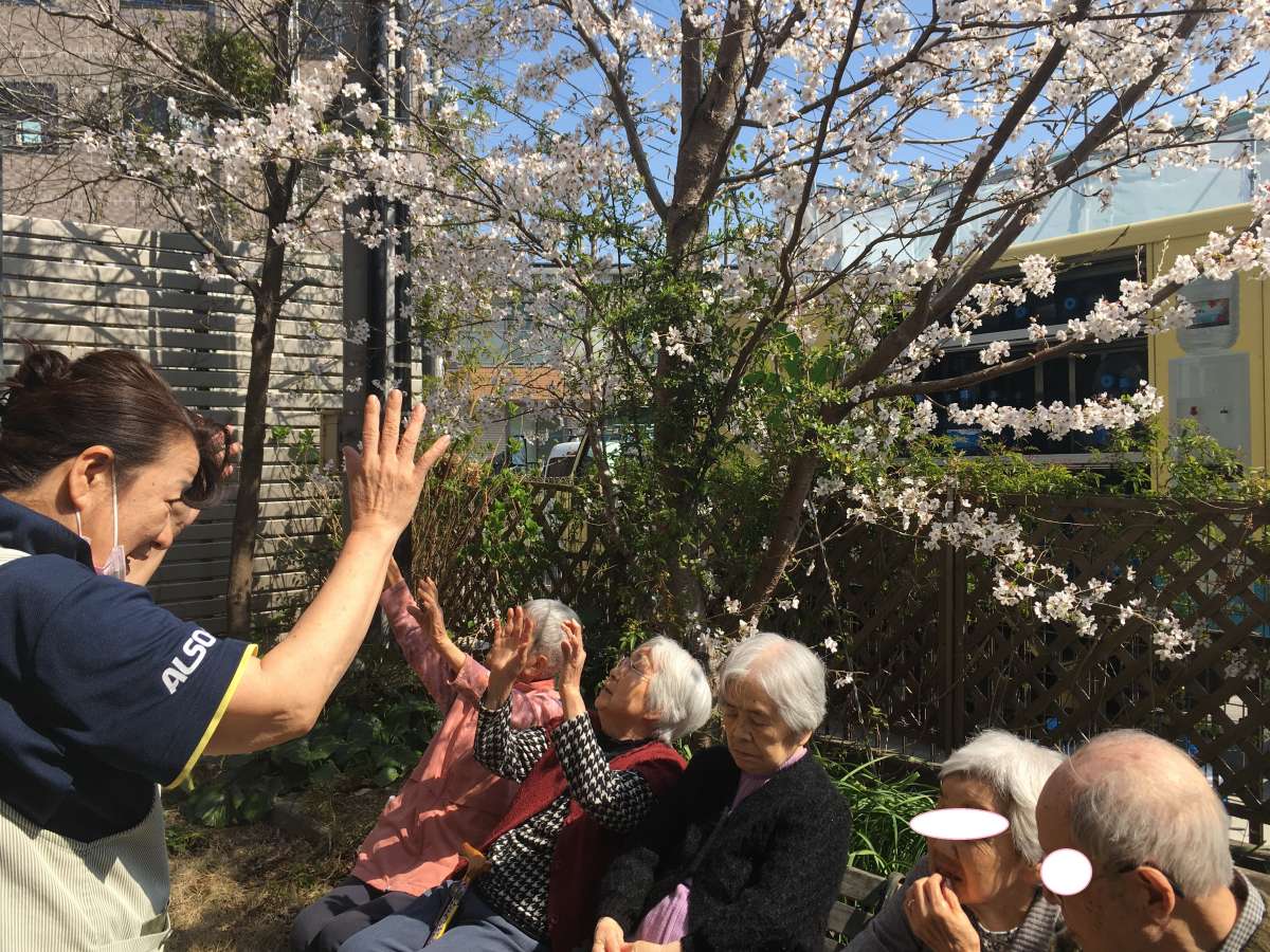 庭の桜で、お花見しました。コロナで色々ありますが、ホームの中は安心です。