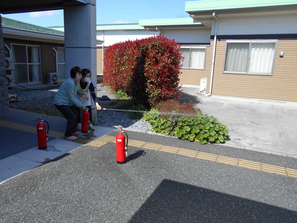 もしもの時に備え、避難経路の確認や消火器の使い方を確認しました。