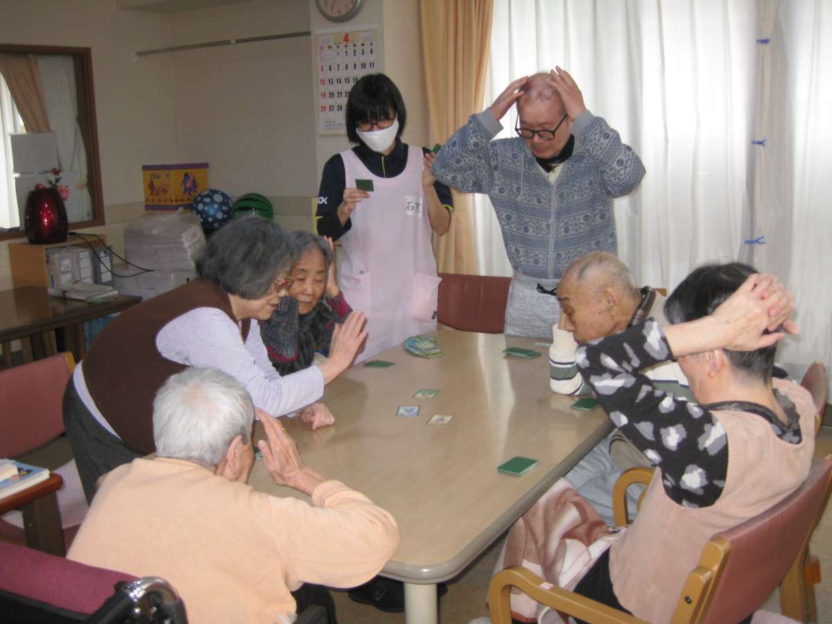 お散歩に出られない日々を何とか楽しんで頂けるように・・・。今日は“かるた取り”を始めました。