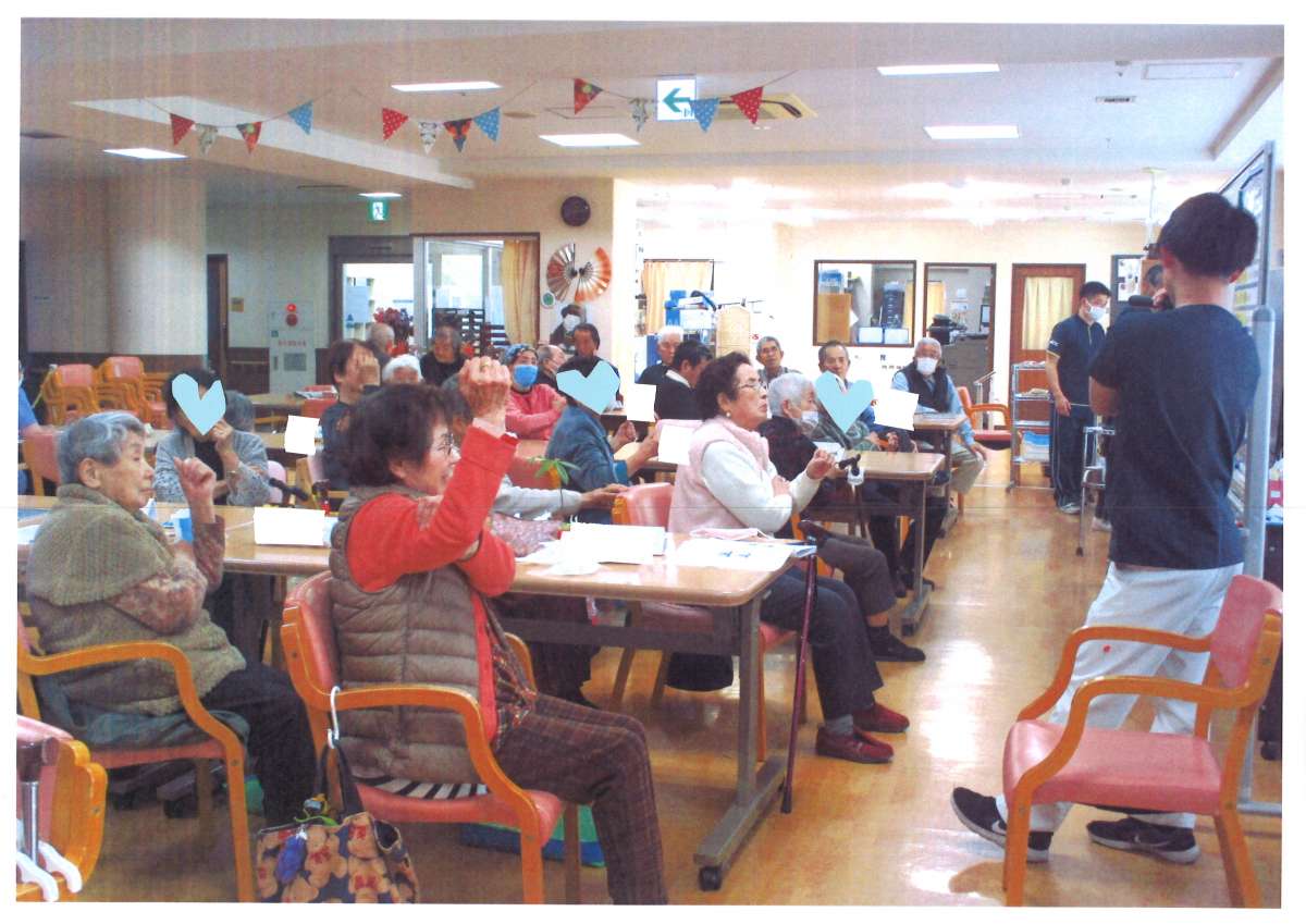 最初に機能訓練士の平本職員からのお話を聞いていただき、ゆったりと心地よいチェアヨガを始めます・・・