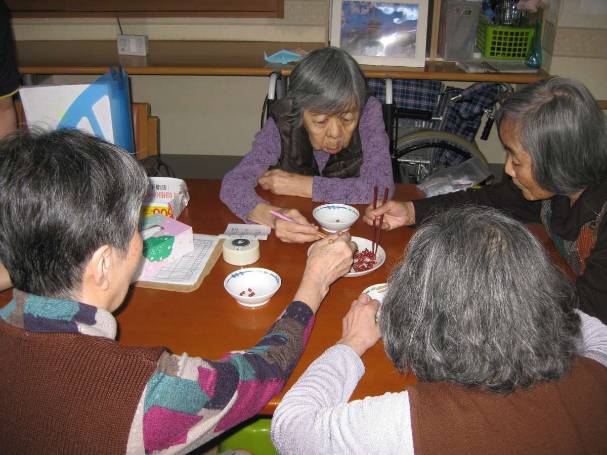 今度は女子だけで“あずき拾いゲーム”が始まりましたよ。男子は【昼寝】です・・・。