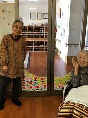完成した作品はこのようにドアに飾りました。とても華やかで素敵です。他の利用者様も「かわいいね~」「よく出来てるわ~」と好評でした(^^♪これからもレクリエーションの様子等ブログで更新して参りますので是非ご覧ください。
