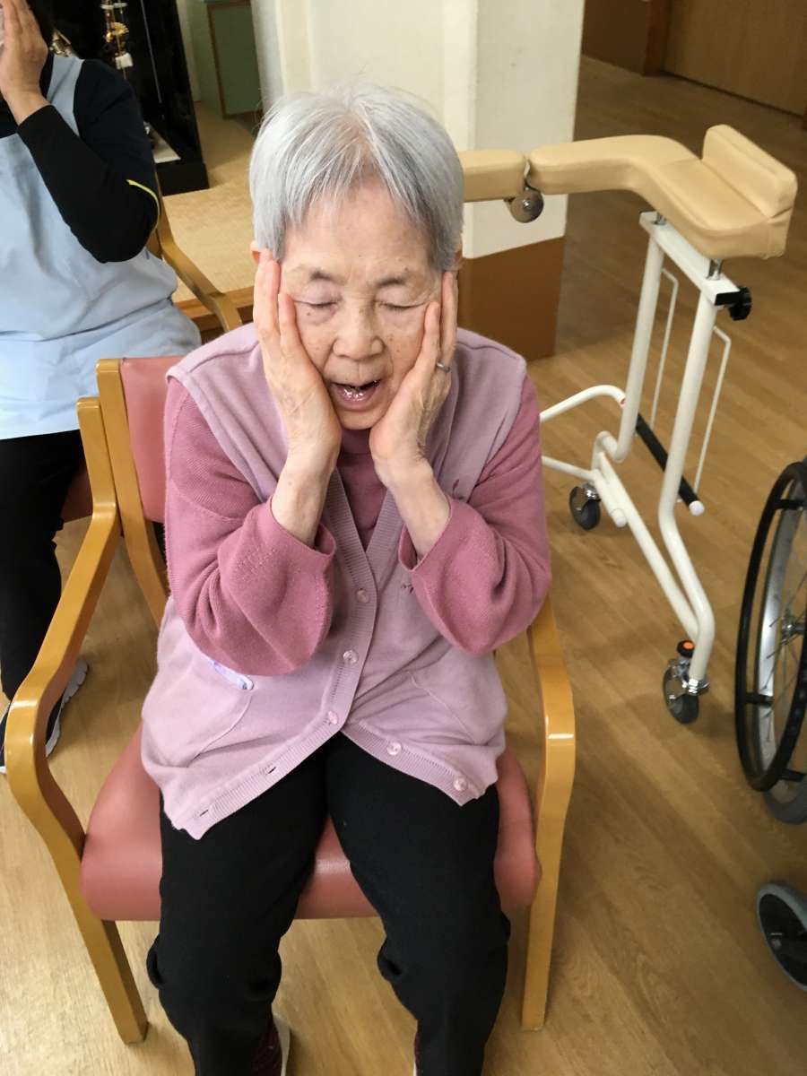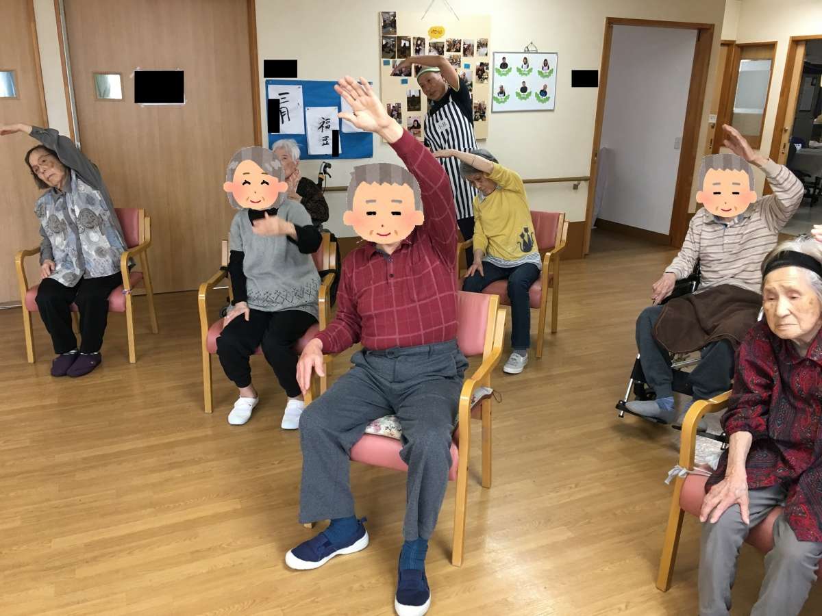 ご自分で体操されるのが難しい方は、職員が傍に付き一部お手伝いさせて頂いております(*’▽’)