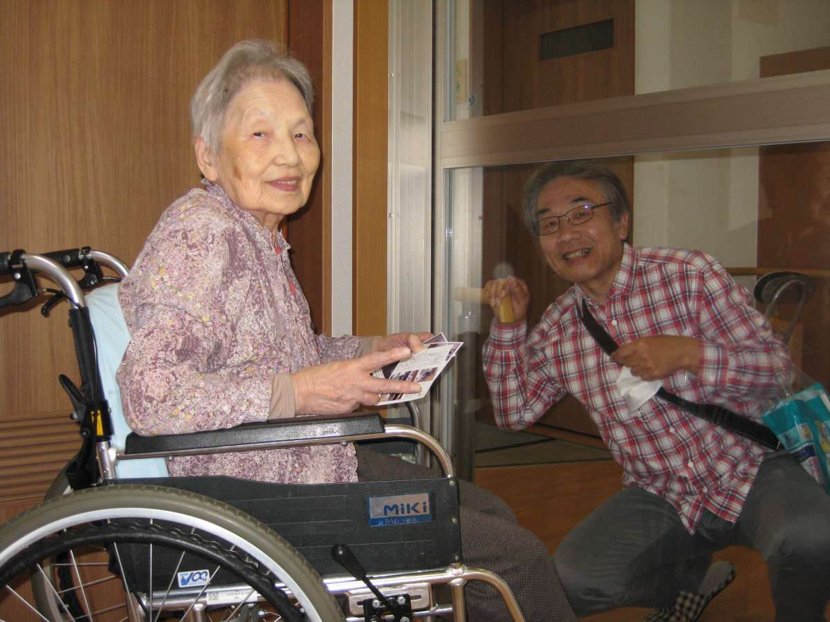 面会自粛中、硝子越しで面会を行っています。直接ではないけれども好評です!! 涙ぐまれる場面もありました。ほっこりしました(笑) 自粛中は継続していきたいと思います。少しでもお気持ちがまぎれればと感じています。早く緊急事態宣言が解除されますように・・・それまでみんなで頑張っていきます!!