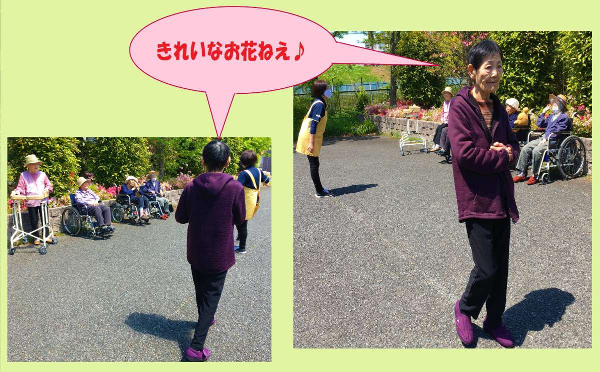 本格的なエクササイズのような激しめの体操ですが、春の陽気の中での体操が気持ちいいようで、普段以上によくお身体が動く入居者様もいらっしゃいました♪