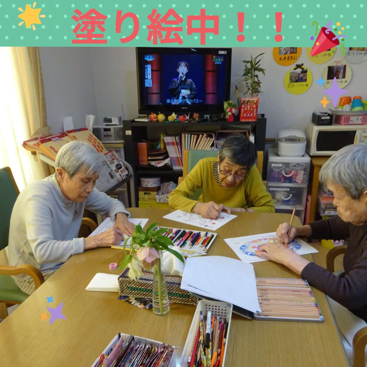 皆様それぞれが選んだ塗り絵やパズルが始まります!