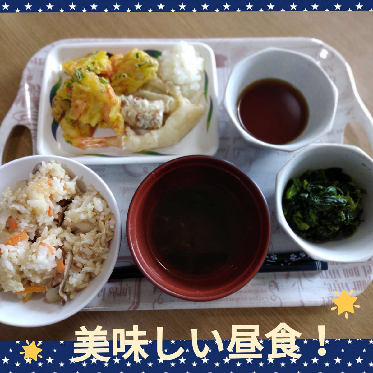 五目御飯に天ぷらと豪華な昼食!!