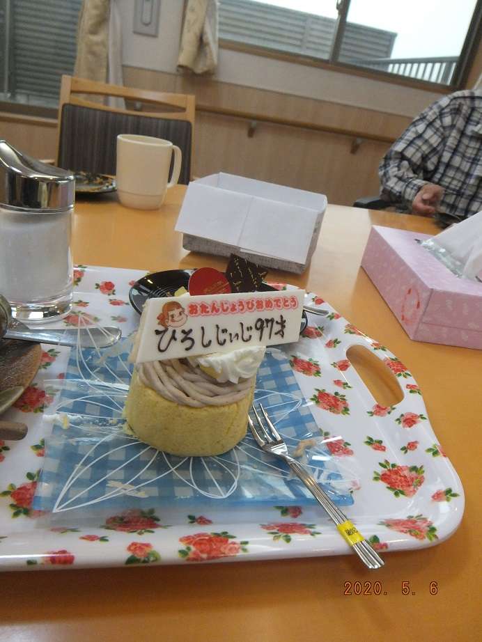 みんなの家・大和田です。本日は利用者様の97歳の誕生日です。 喫茶店のコーヒーセットをまねて、ドリップコーヒーと手作り葛餅セットでお祝いしました。息子様が誕生日ケーキを持参して下さり豪華なコーヒーセットが出来上がりました。 ハッピーバースデーをみんなで歌い、楽しい時を過ごしました。 息子様のケーキを手に満面の笑みです。 いつまでもお元気で。