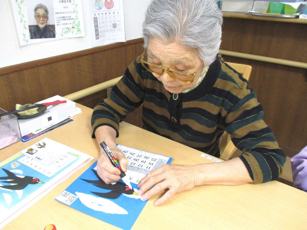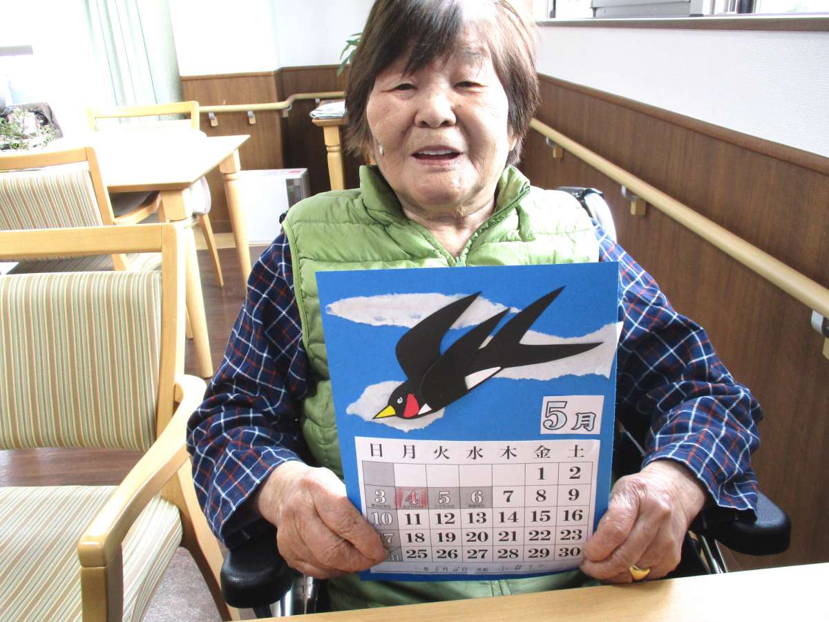 五月になりました。皆さんそれぞれにご自分のカレンダーを作っていただきました。今月は、五月晴れと燕のカレンダーです。皆さん、童心に帰って楽しそうに作っていました。