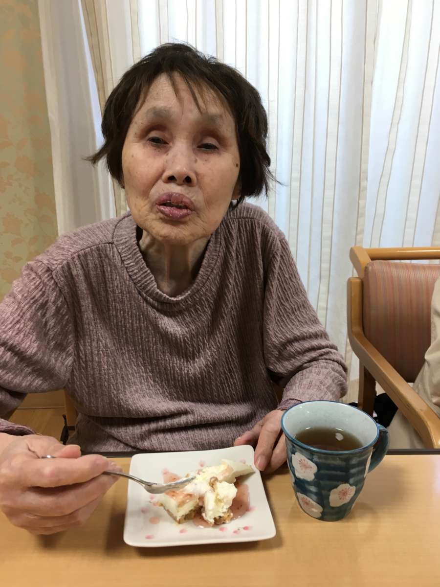 介護職員の石井さん が、ケーキを作ってくれました。器用な女性で、手芸もお得意なんです。これからもよろしく。