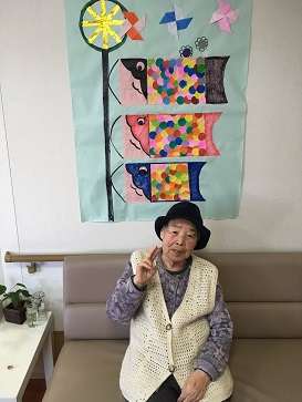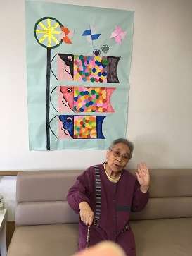 こんにちは!グループホームみんなの家・三郷2です。ブログをご覧頂きありがとうございます。少し遅くなってしまいましたが、こどもの日に向け1階の利用者の方と鯉のぼりの貼り絵を製作しました。とても色鮮やかで迫力ある作品が出来ました~!