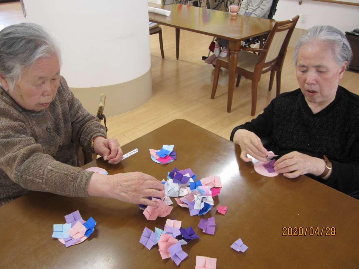 折り紙、張り絵のレクリエーション\(^o^)/