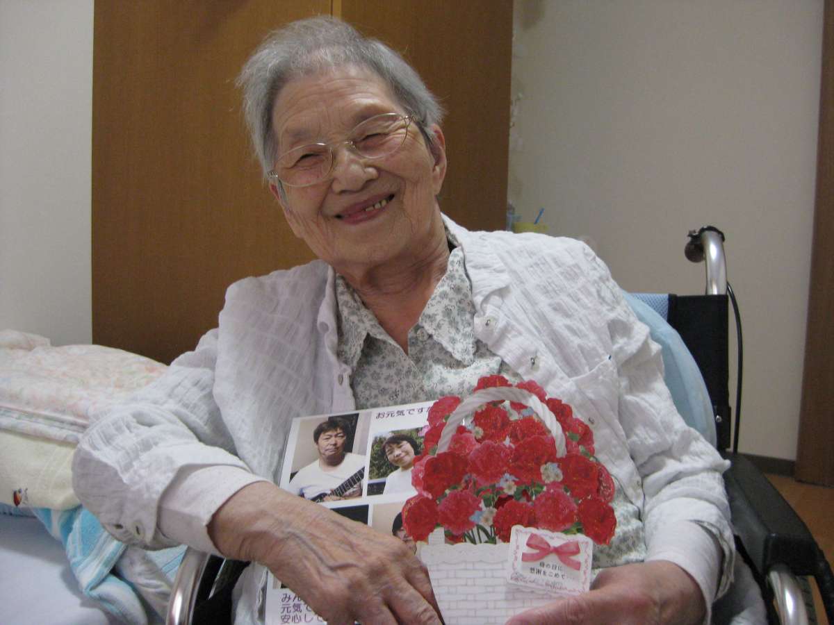 母の日ということで、面会自粛中の為娘様からGHあきがせに郵送されて来ました。ご本人様カーネーションやお手紙にに感動し涙ぐまれていました。介護職員ももらい泣きしちゃいました(笑) 笑顔が素敵ですね・・・! 鉢植えのカーネーションに「綺麗、有り難う」と喜ばれていました。お花っていいものですね・・・ 心が穏やかになります。早く肺炎コロナ感染症が終息しますように願っています。