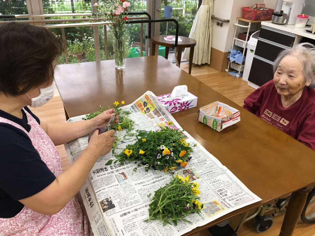 先日、施設のスタッフと入居者様で 施設周辺のお花の植え替えをしました!!