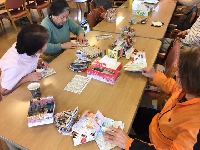 利用者様が、普段テーブル用のごみ箱として使用されている「箱づくり」を作成してくださっております。