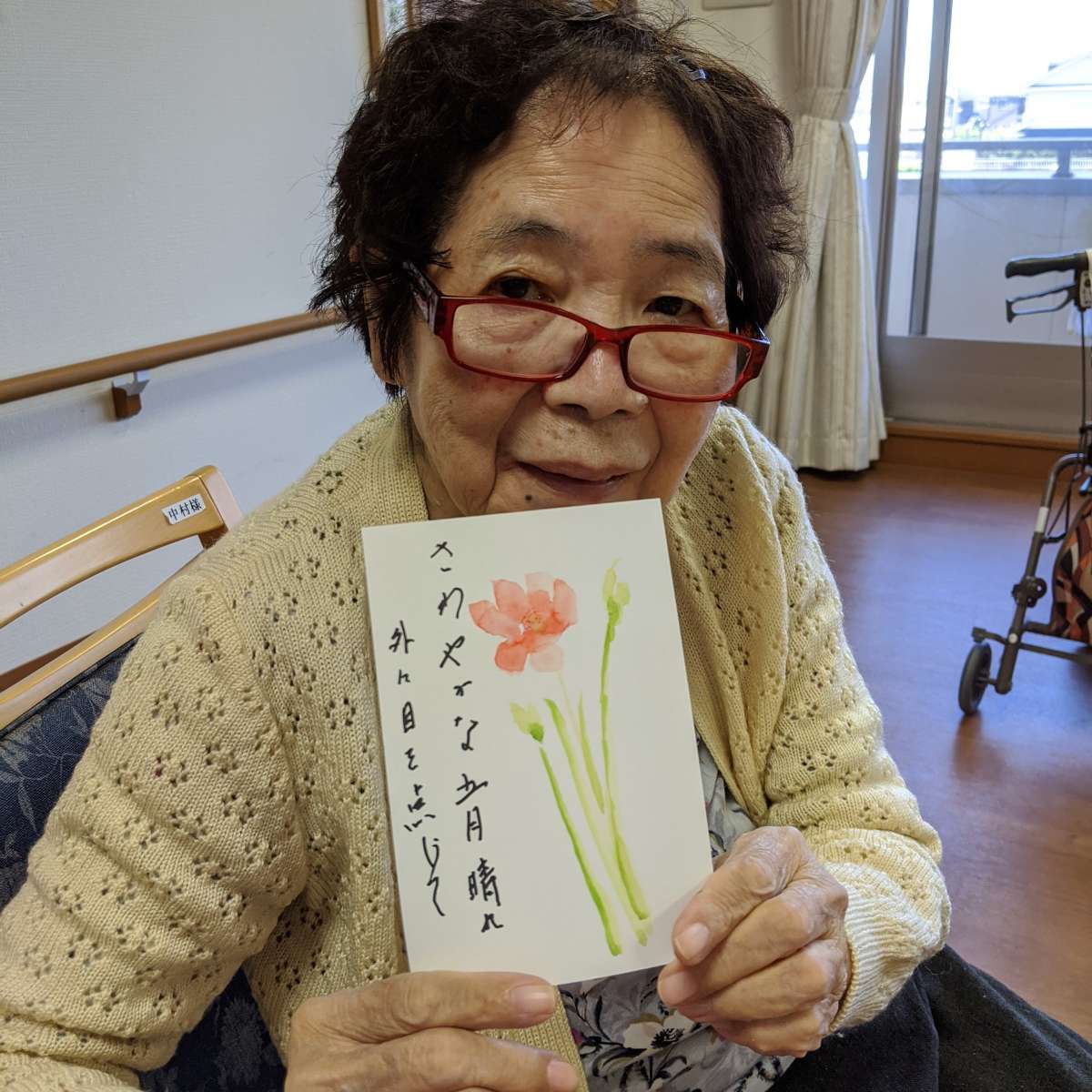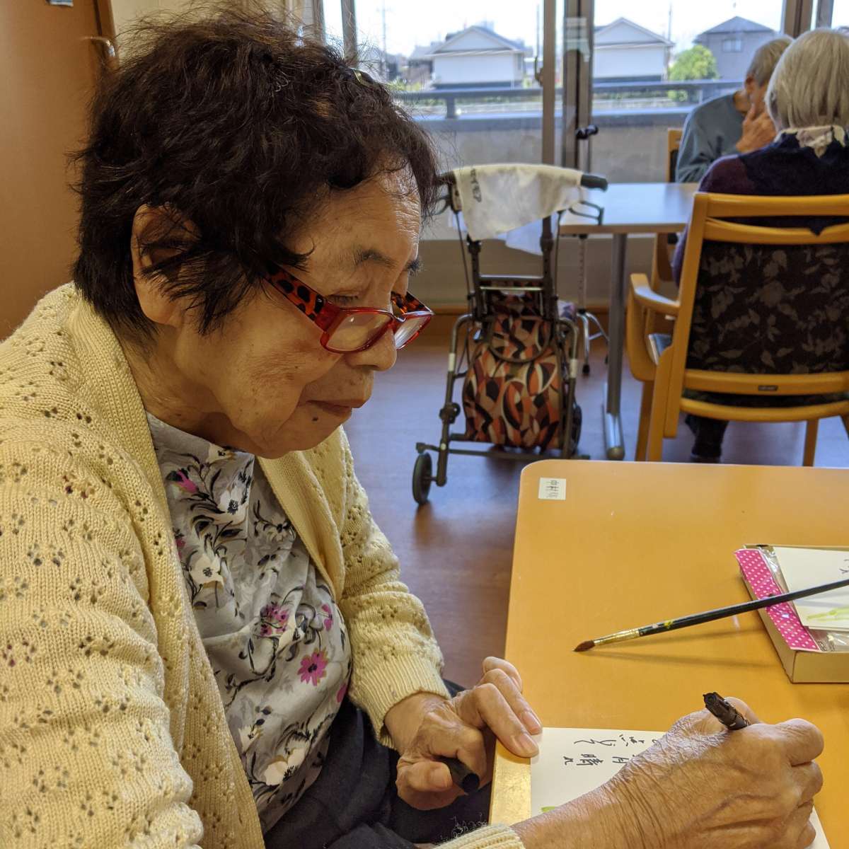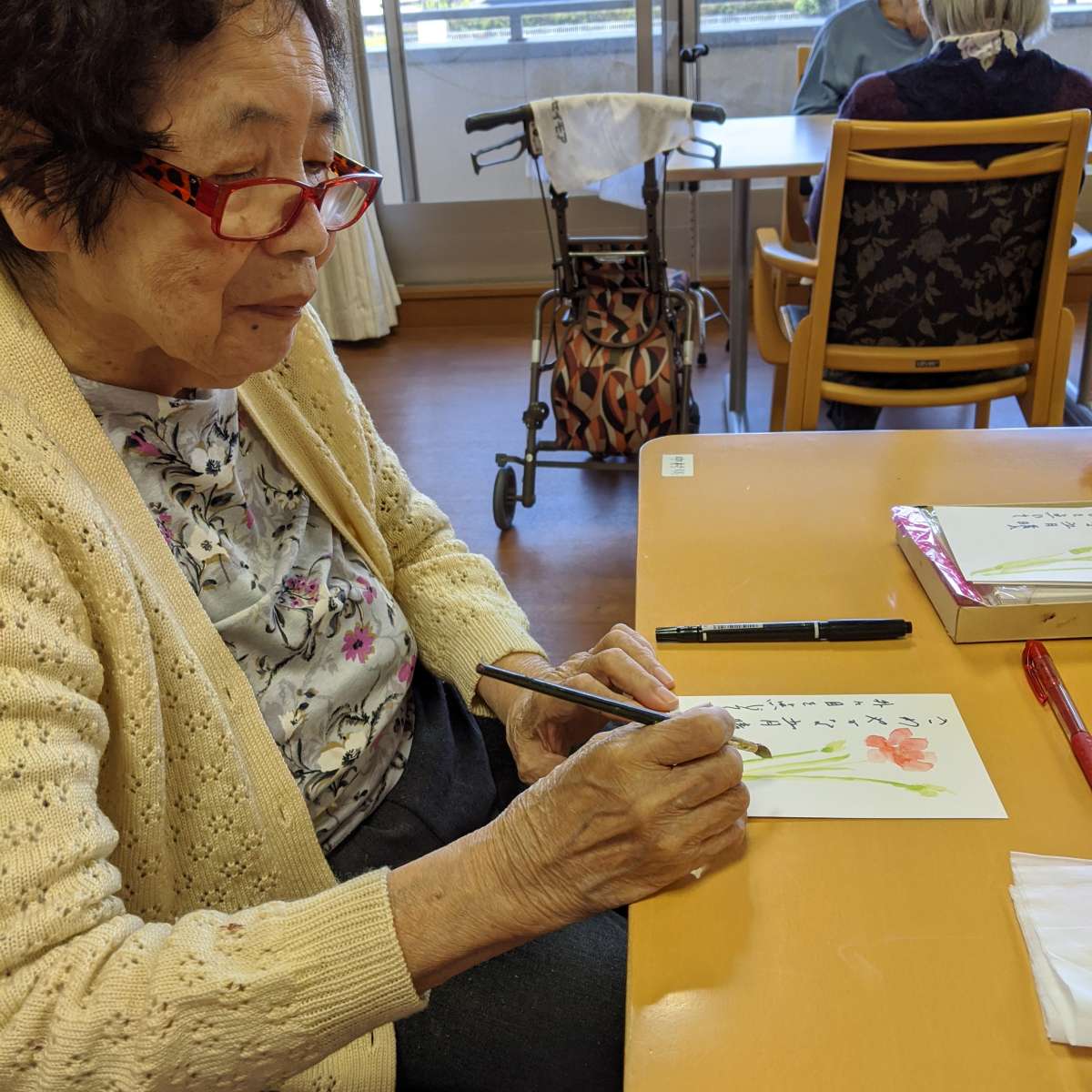 とある日の午後、2階フロアでN様が絵手紙を描いていらっしゃいました。