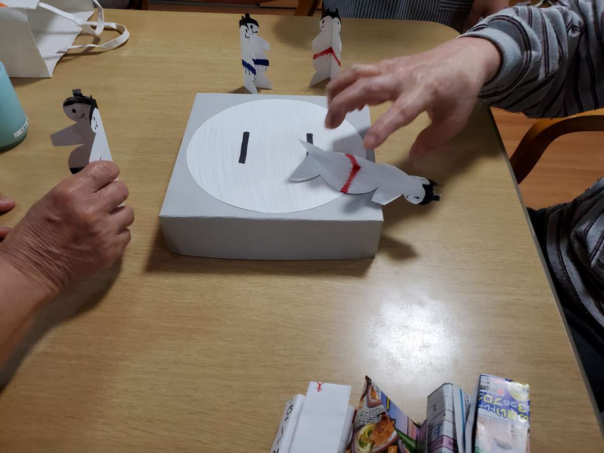 今回、野球と相撲が大好きな利用者様にある職員が手作りトントン相撲をプレゼントしました!