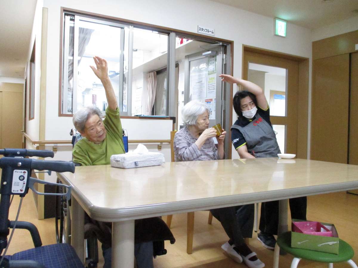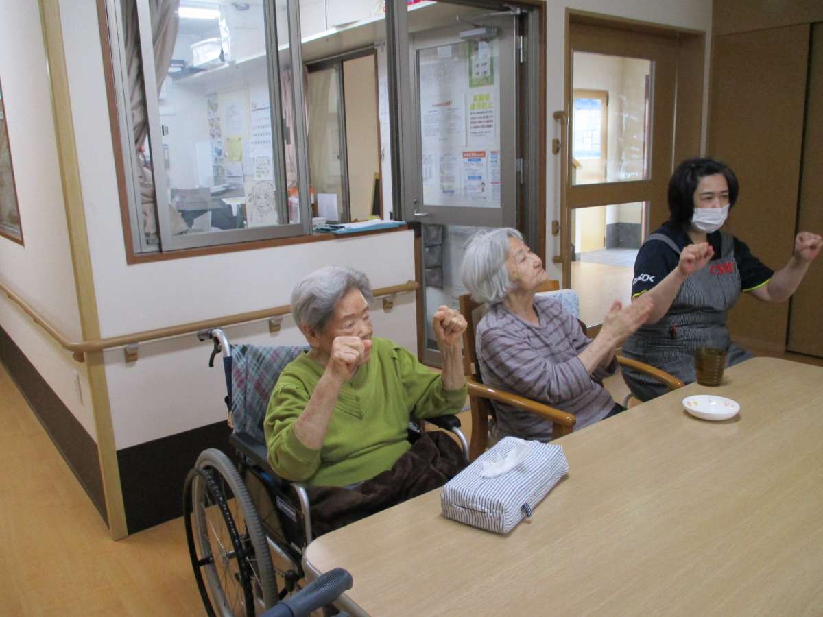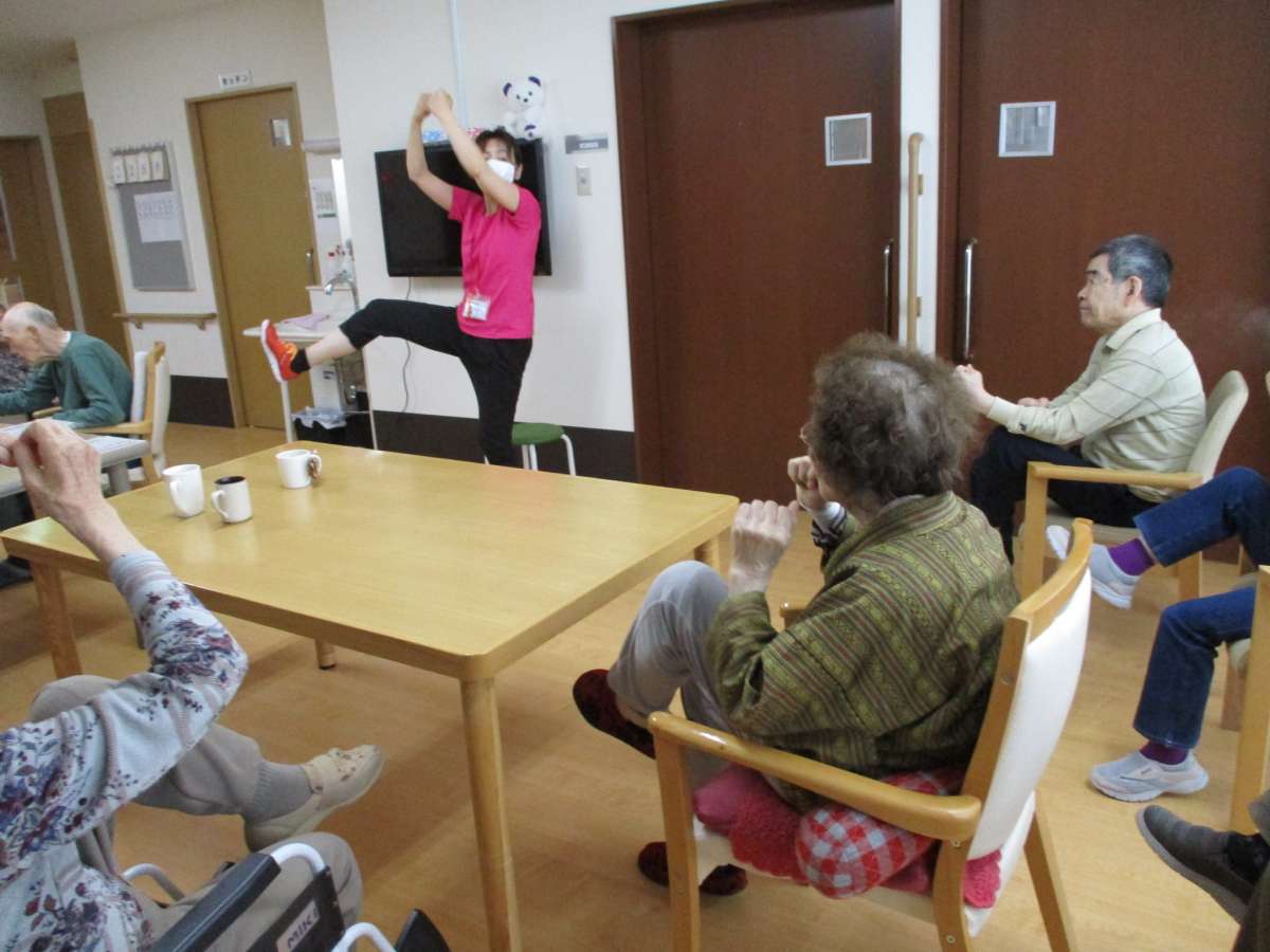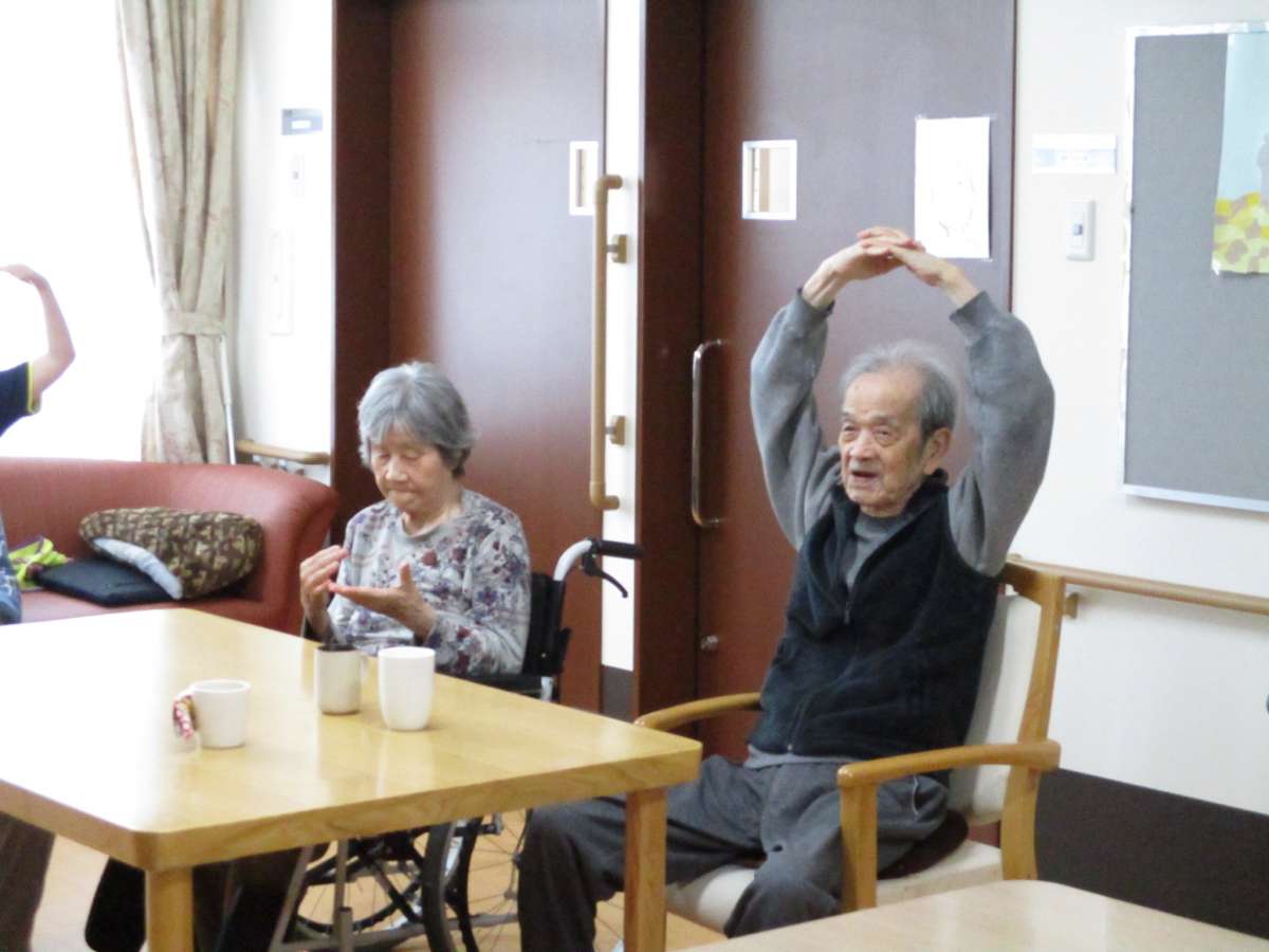 「あんしん」「あんしん」掛け声しながらのストレッチ。