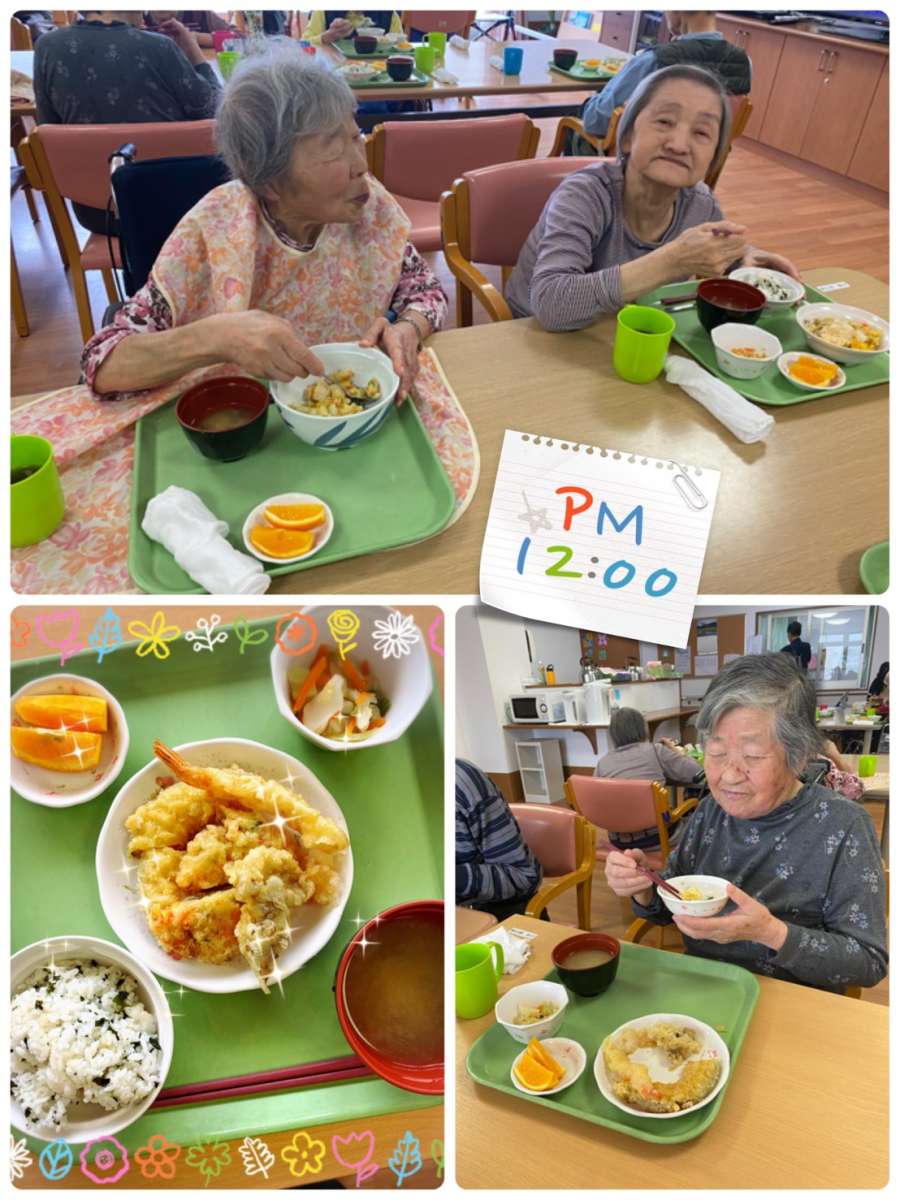 こんにちは。みんなの家・大宮内野本郷のコダマです(^。^) 花の丘公園そば。さいたま市西区。 宮原駅西口よりバス6分&徒歩4分のところにある施設です。 本日のlunchは ◉わかめご飯 ◉お味噌汁 ◉天ぷら盛り合わせ ◉キャベツの浅漬け ◉オレンジでした(^。^) 天ぷらは、海老・南瓜・かき揚げ・舞茸の豪華版でした☆ 『天ぷら、食べたかったんだよ♬』 『南瓜!大きい♬最高!』と、皆さまテンションが上がっておられました(๑˃̵ᴗ˂̵) 今日は蒸し暑い一日でしたが、内野本郷の入居者様方♡は皆様お元気です☆