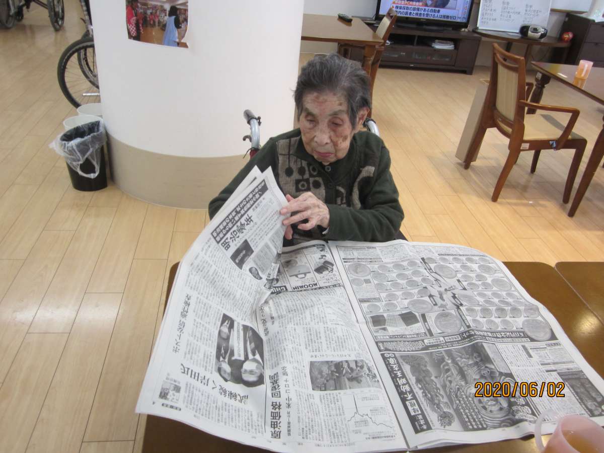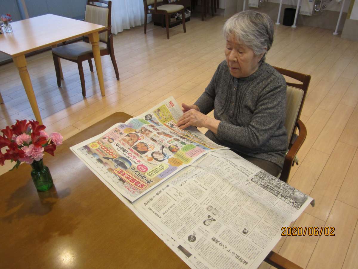 自分の席にて朝刊の読売新聞を読まれます。