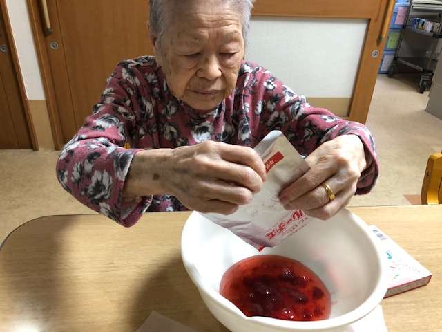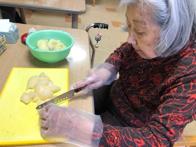 いつもなら他の方の作業を見ていることが多かったのですが自分の出来る範囲で参加してくださり、完成したおやつを美味しく召し上がっていました。