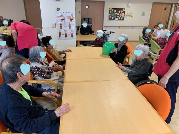 今日はみんなでテーブルを囲み『ふわふわ風船バレー』を行いました🎈