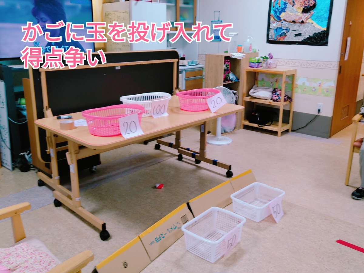 レクリエーションはかごにボールを入れるというシンプルなあそび。