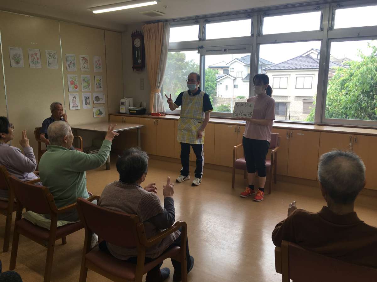 GHみんなの家松伏では筋力低下、認知予防の為のケアの一つとして先生によるNoa体操を実施しております。