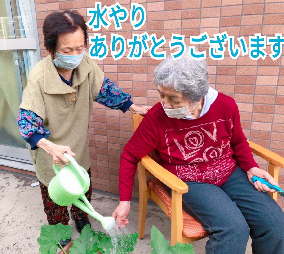 外に出て、自分たちの植えた野菜の苗を愛でながら、