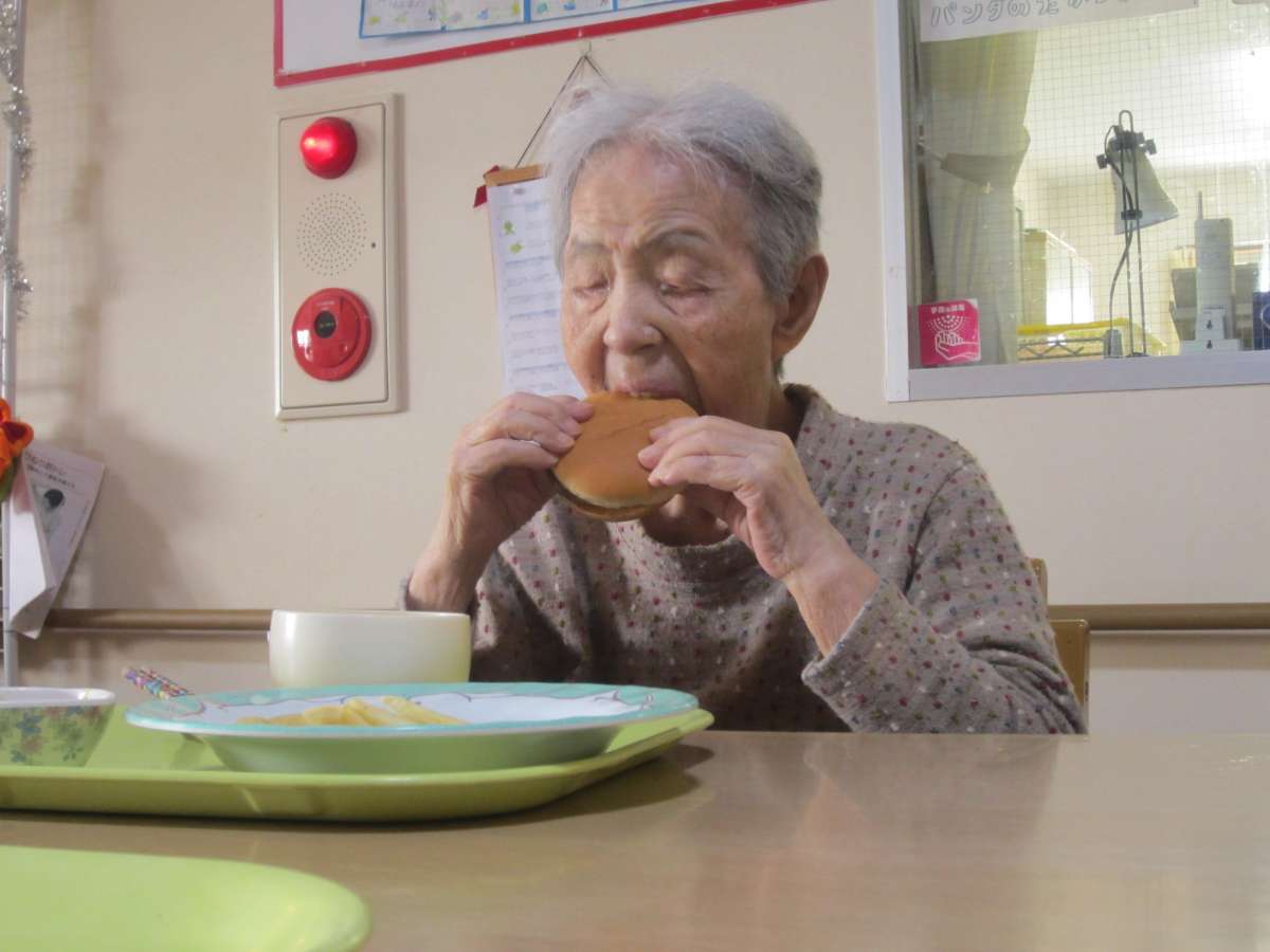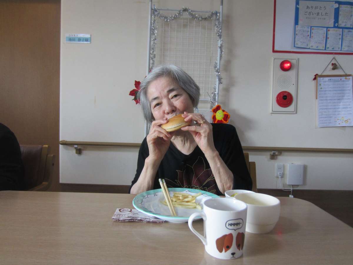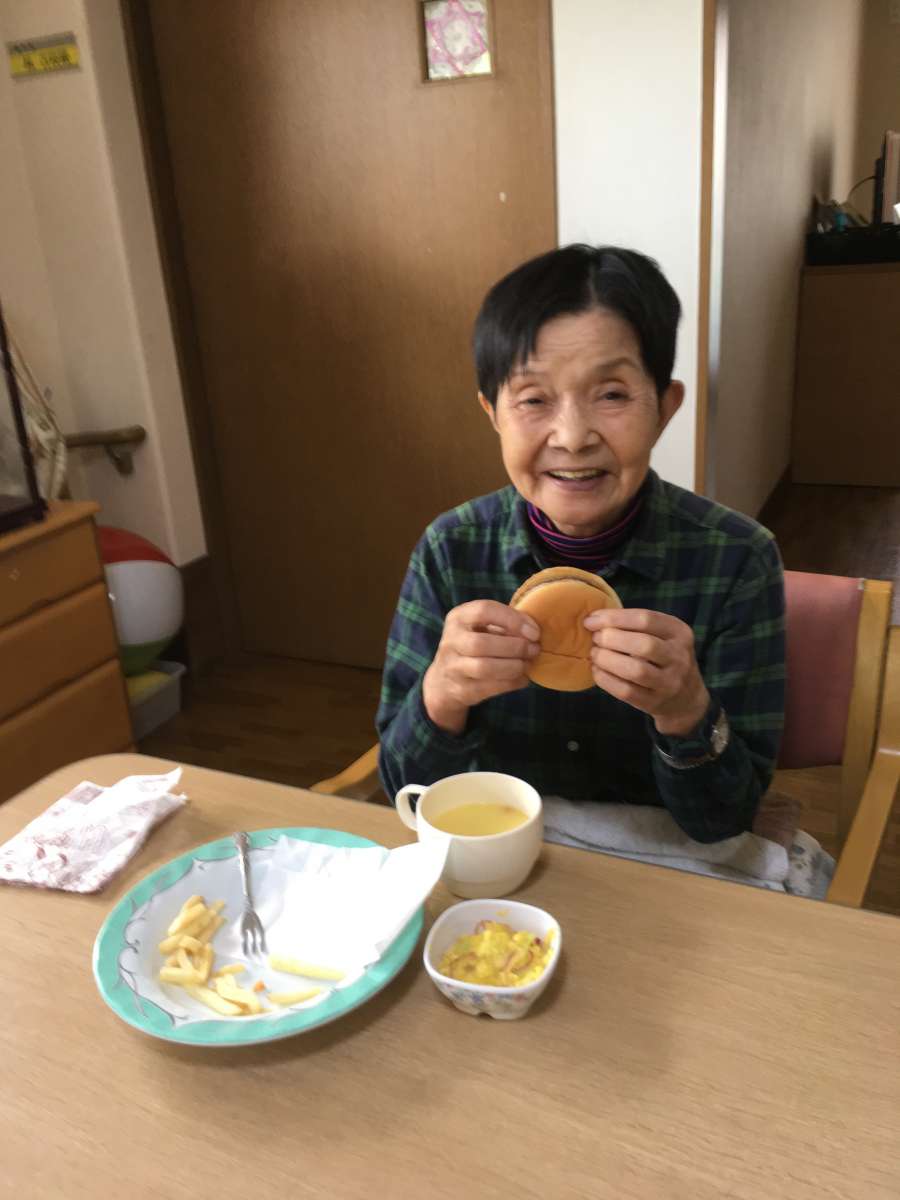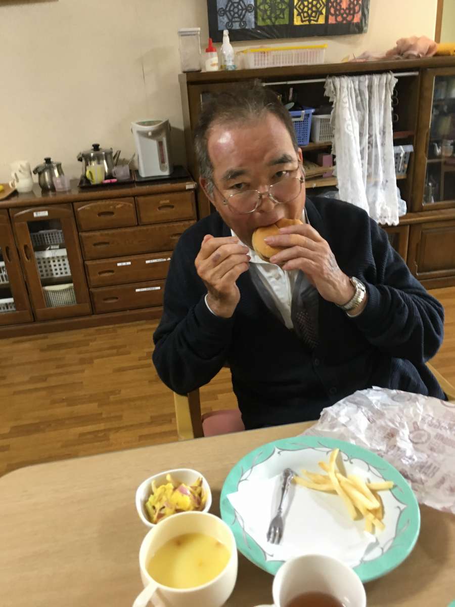 皆さん、ハンバーガーとポテトとサラダを美味しそうに食べておりました。