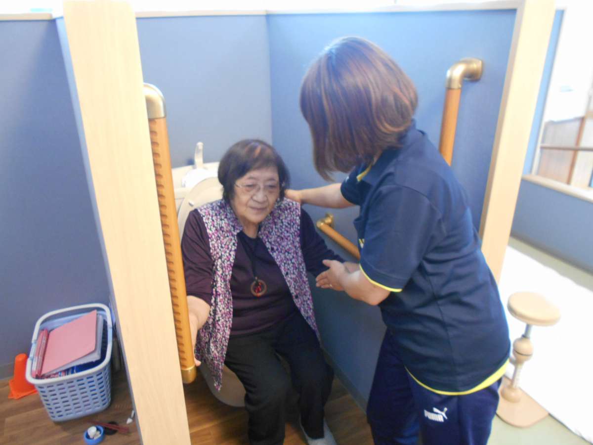 ズボンの上げ下げや、お尻を拭く動作などしっかりとリハビリしていきます。