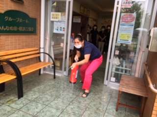 本来ならば、横浜市消防局 緑消防署十日市場消防出張所の所長さん、近隣の方々のご協力を頂きながら行う予定でありましたが、新型コロナウイルス感染の予防のため、自主訓練を行いました。