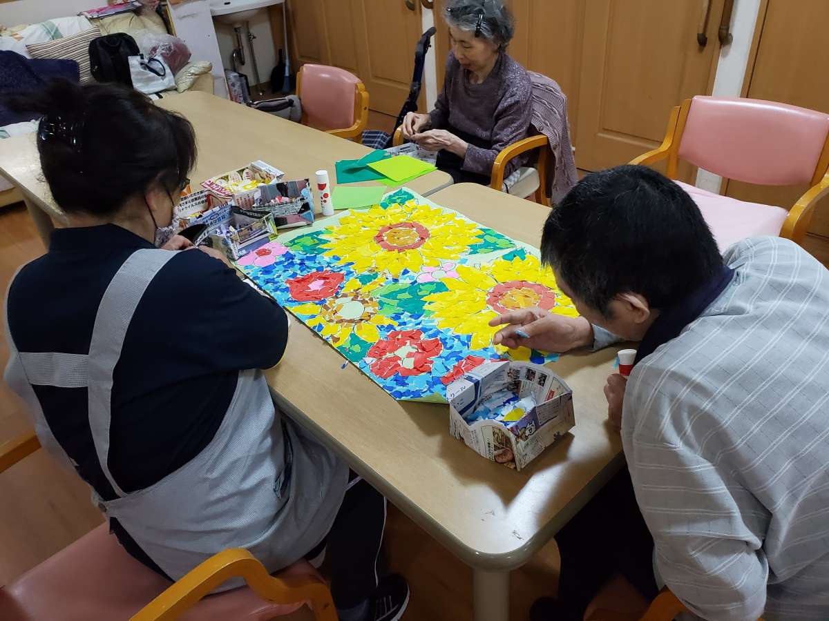 皆様で貼り絵作業の真っ只中!