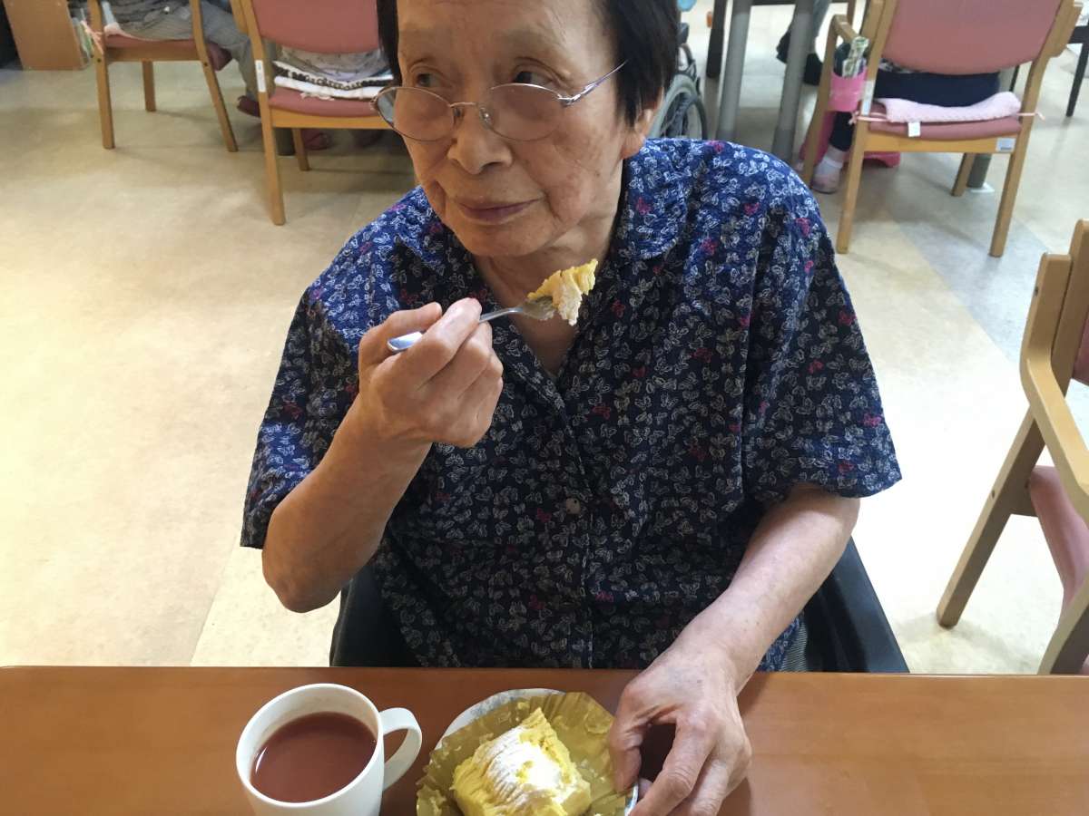 “誕生日会&父の日”に・・・。モンブランケーキ、苺のショートケーキ、チョコケーキ・・・。「美味しいね!」