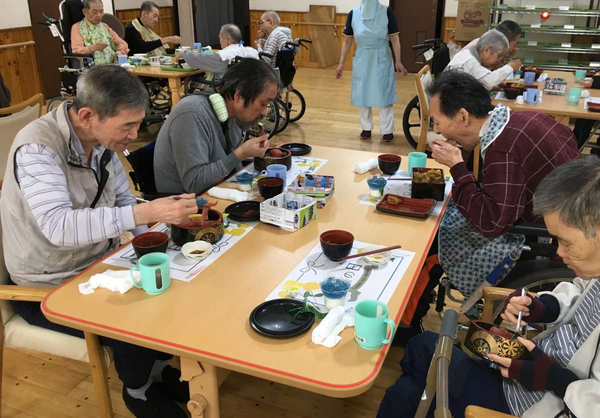 6月19日(金)父の日のイベントを行いました。男性のご入居さまに日頃の感謝の気持ちを込めてお昼ご飯に、特上天丼 海鮮丼 うな重などを召し上がっていただきました。