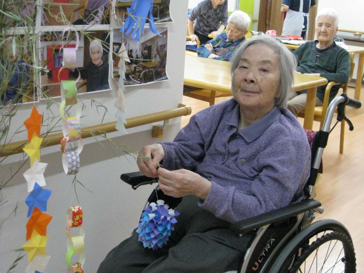 短冊に願い事を書きました。皆何をお願いするのかな・・・ それぞれと自分の思いを書いていました。当日に個々に願いを込めて飾りましょうね!!《恥ずかしいわ~》と照れながら笑っていました。