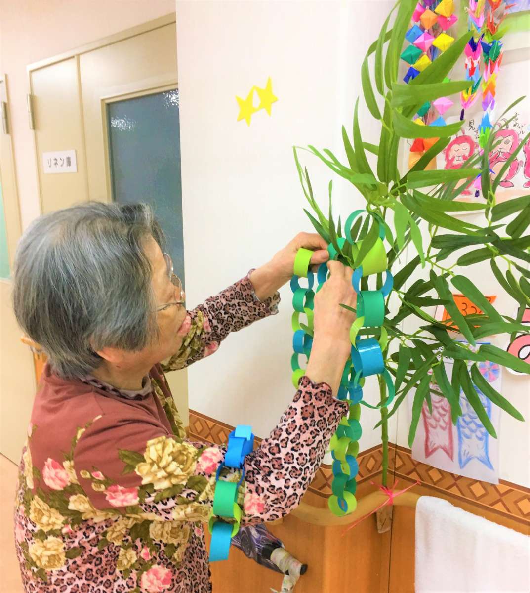 七夕の飾り付けを手伝って頂きました(*´▽`*)