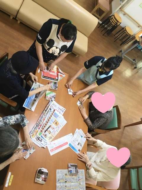 テーブルの真ん中には、チラシの山!