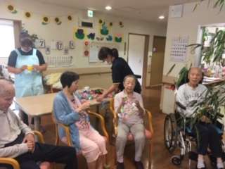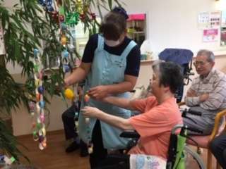 毎日のレクで、七夕飾りを頑張って作っていらしたので、飾り付けも楽しそうでした。
