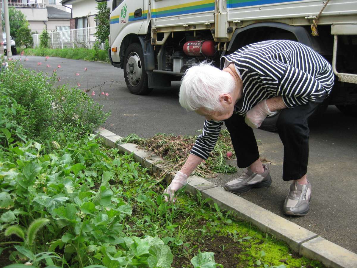 草むしりをお手伝いしてくれました。《腰が痛くなってきちゃった・・・ 》はつか大根を収穫すると【凄いね、これなんて言うの??】とびっくりしていました。