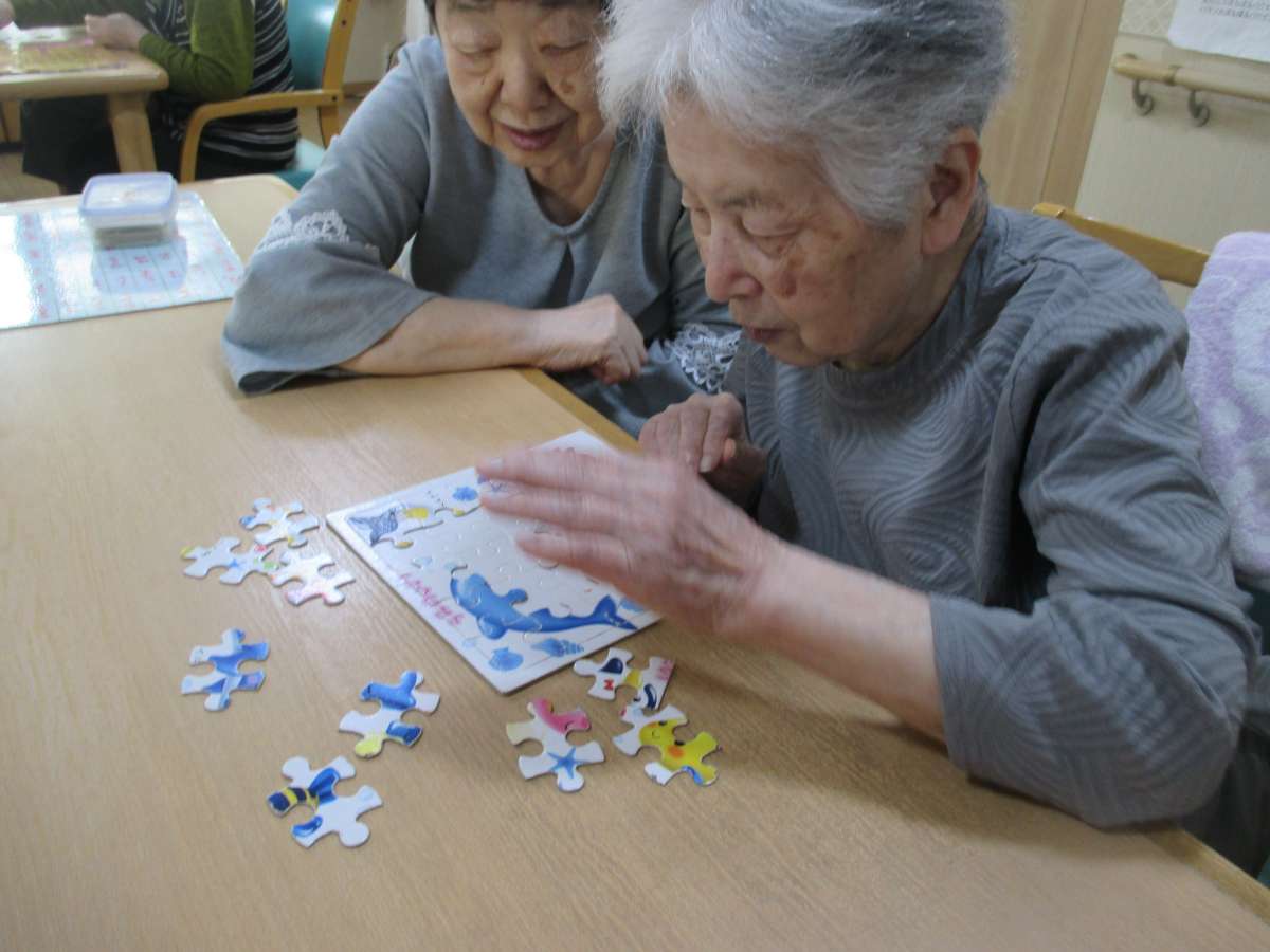 毎日のレクリエーションでパズルをされている様子をお伝えします。