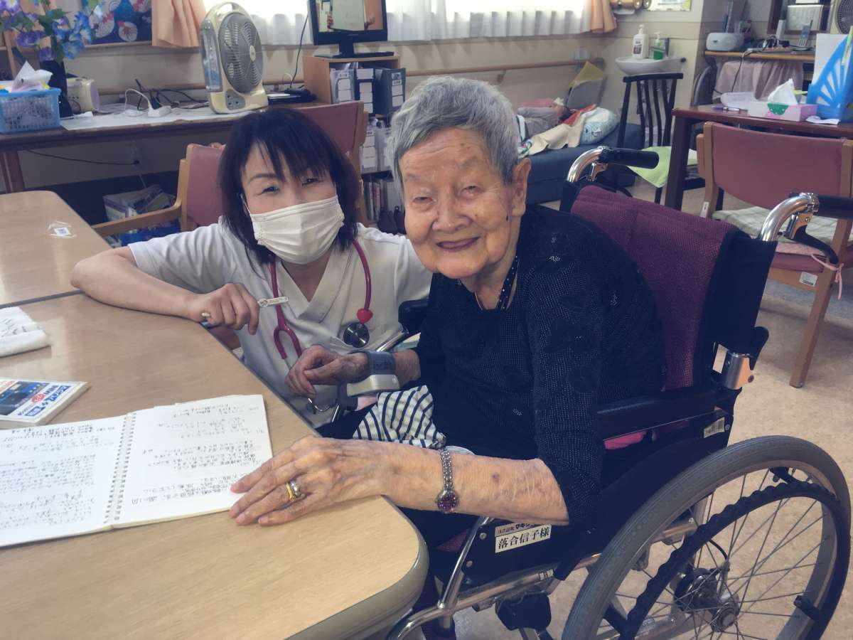 訪問看護師・清水さんとの2ショット!O様も清水さんも"笑顔が素敵"です。