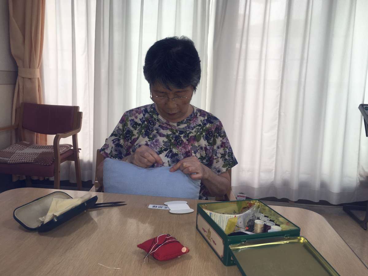クッションのほつれを縫って下さっています。「このくらい簡単よ。いつでもどうぞ。」優しいK様・・・。