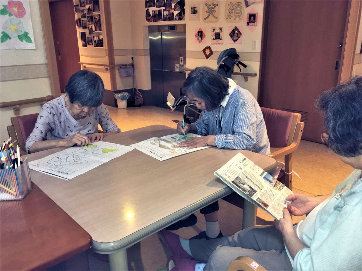 「何色で塗る?」「ピンクがいいんじゃない?」仲良しコンビのS様、N様。そしてマイペースなH様。穏やかに流れる時間です。