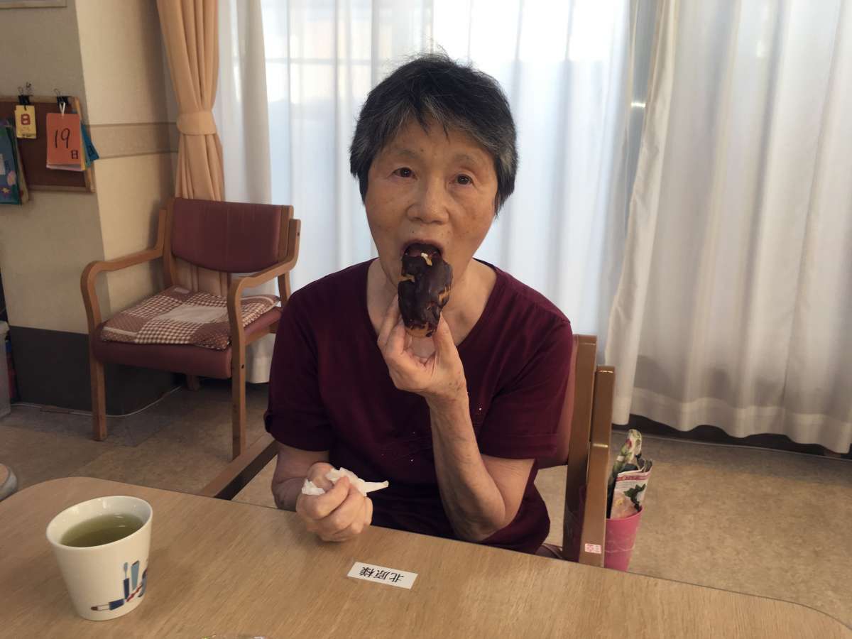 今日のおやつは《大きなエクレア》! 利用者様の喜ぶ笑顔が見たくて、買い物も楽しいです・・・。